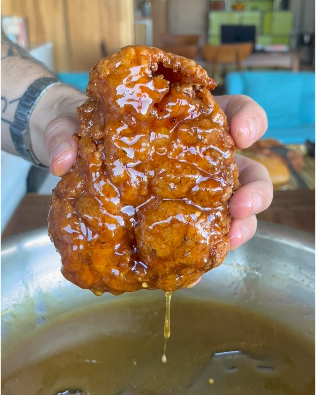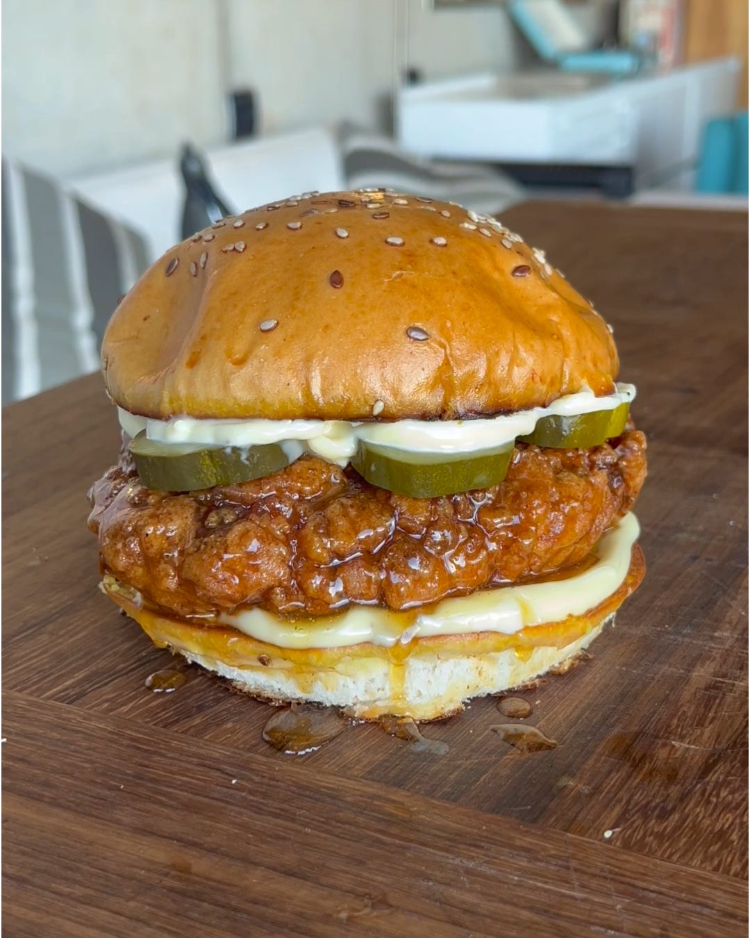 It’s built on the simplest things done properly: a good-quality homemade mayo, crunchy fried chicken glazed in spicy honey, and thick-cut pickles bringing that sharp, vinegary bite. No overthinking, no unnecessary extras — just sweet, spicy, crunchy, and creamy in all the right places. Very simple, very effective, and very worth making.