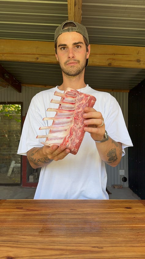 When it comes to buying a lamb rack like this, you will need to go to a butcher. The reason being is that you need to buy a “chined” rack of lamb. This is where the butcher slices through the backbone of the chop with a saw, so that you can easily slice through later on. Without doing this, you simply wouldn’t be able to serve individual chops without them looking like a feral animal attacked them first.