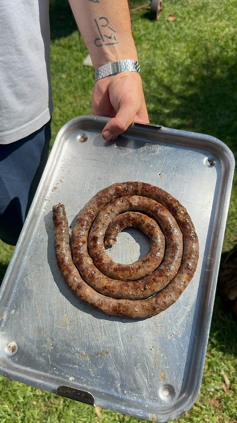 Braai quickly over high coals, turning once. Allow one side to caramelise really well then flip to finish. I like my wors a touch pink in the middle so I treat it like a thin steak.