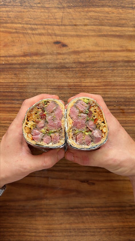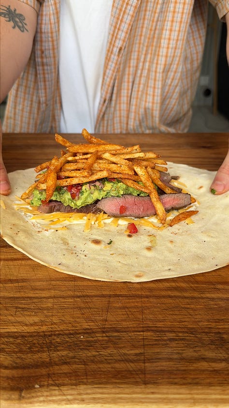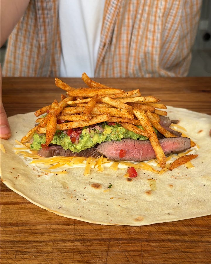 And where better to start than a classic steak burrito, loaded with the most insane guac, Mexican chilli-spiced fries, punchy pico de gallo, and a dollop of sour cream to balance it all out.