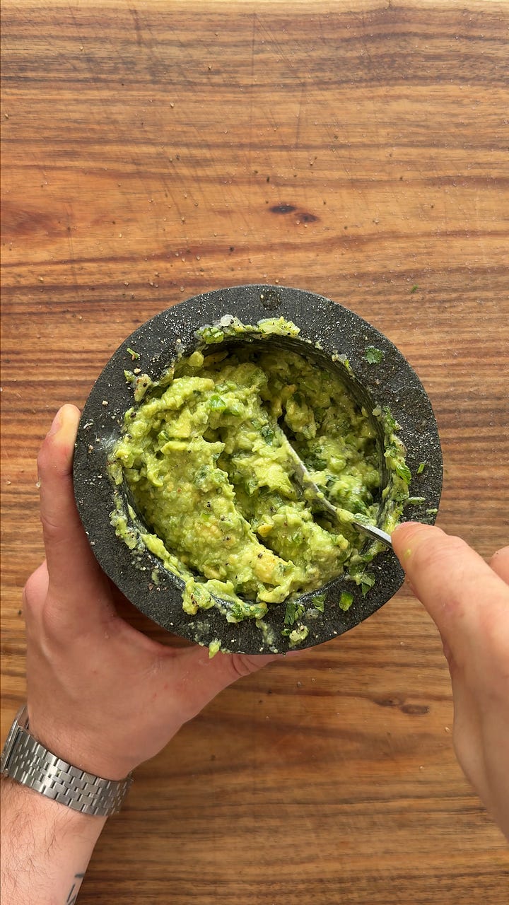 Sure, there are store-bought options that “will do” or even quite nice. But they don’t come close to this. I promise you, once you make it this way, you’ll never look at store-bought guac the same again. Smashing the onion into a paste before mixing in the avocado creates a sweet, spicy depth that’s completely unbeatable when fresh.