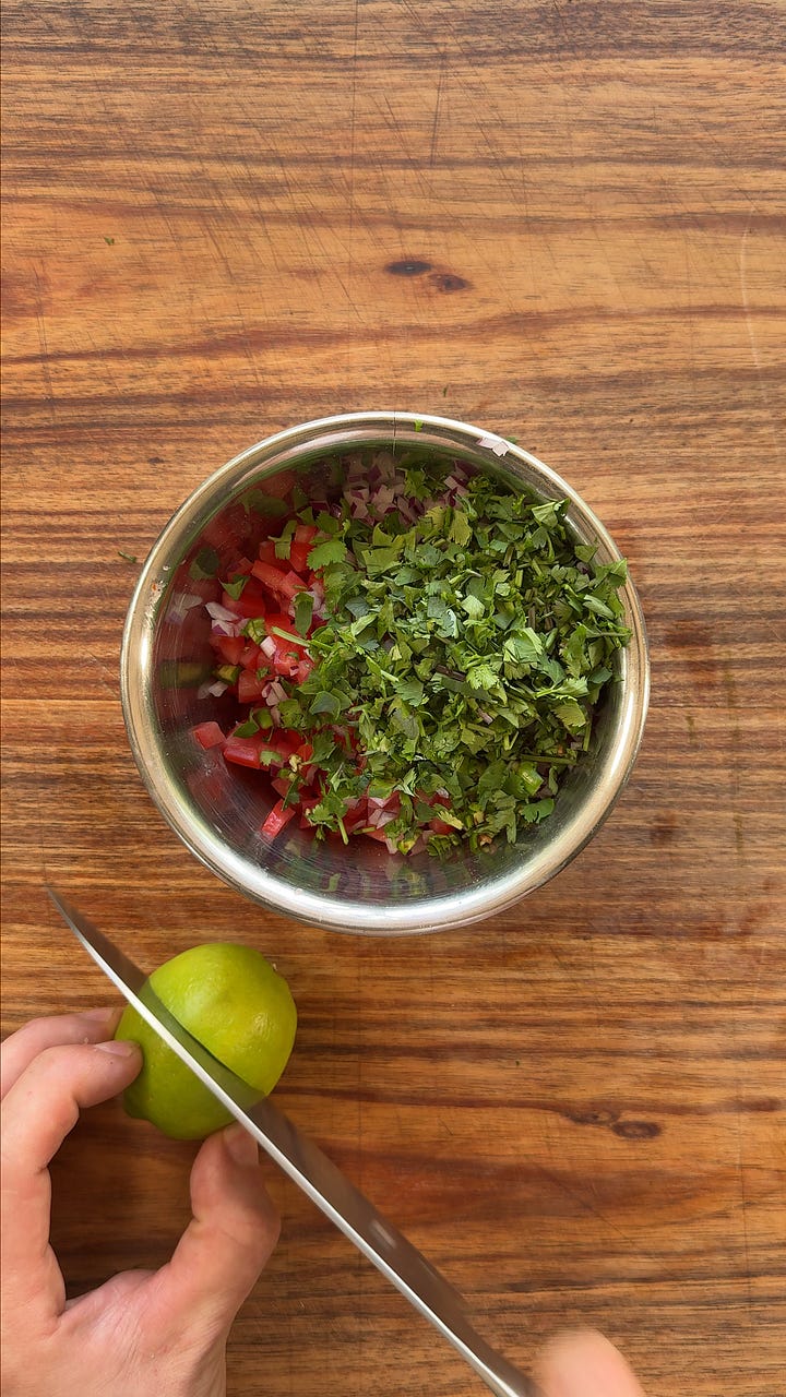 ½ small red onion, finely diced1 fresh jalapeño or green chili, finely chopped
